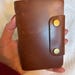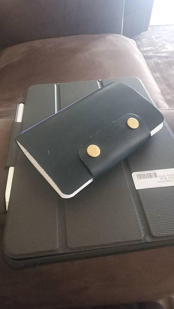 This handmade leather cover is designed for Field Notes notebooks (9x14 cm / 3.5"x5.5"). Crafted from full grain glossy leather, it features a secure snap closure and a dedicated pen compartment for everyday convenience.