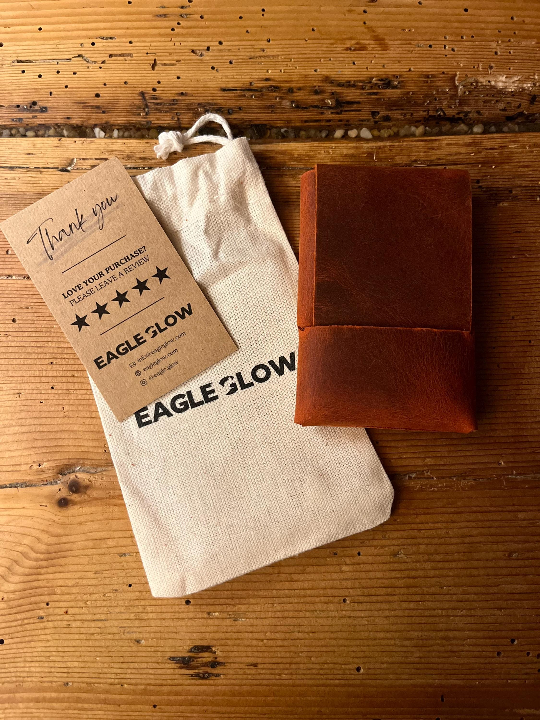 Holds 8 cards and 5 bills without bulk. Handmade from durable leather that develops a beautiful patina over time.