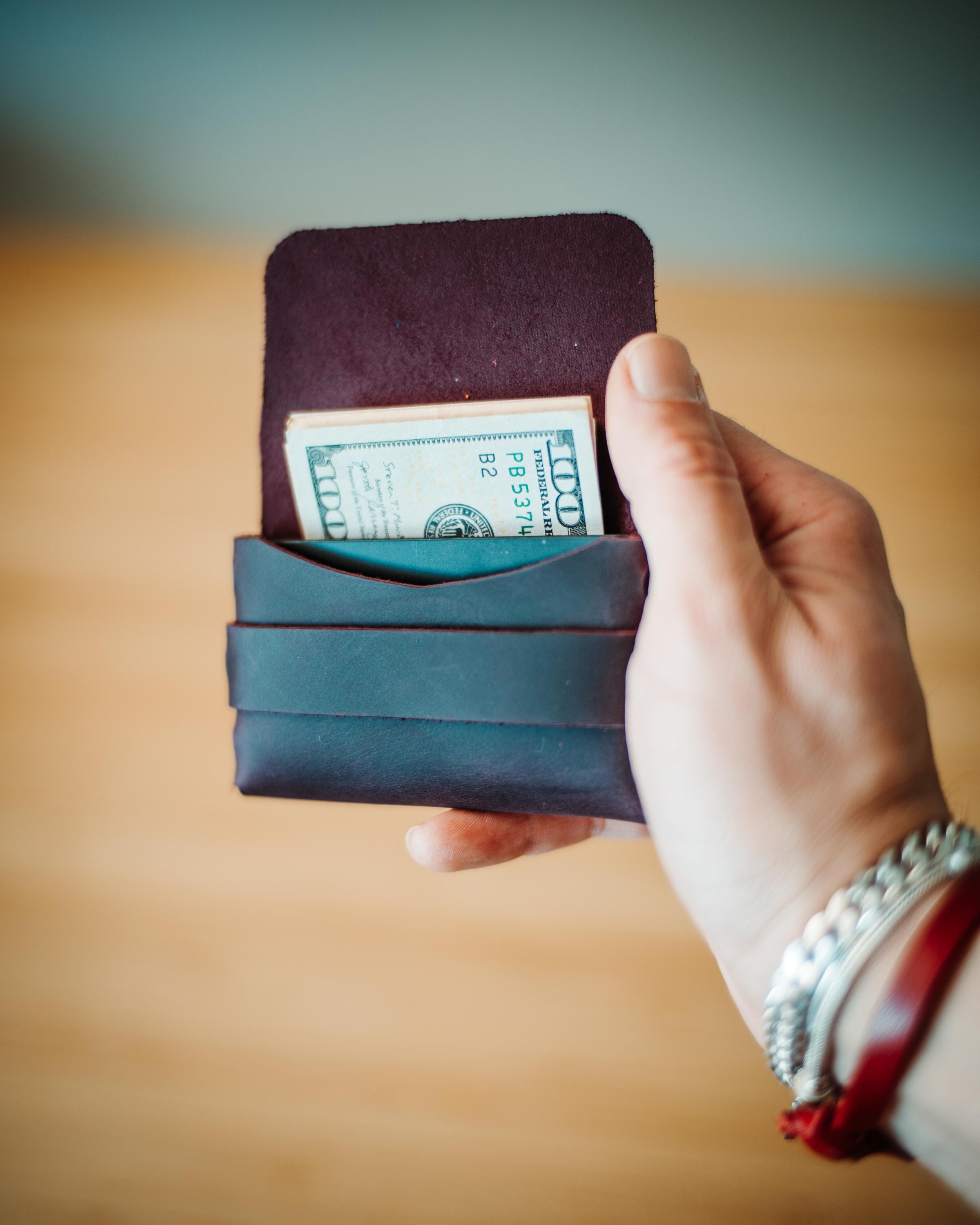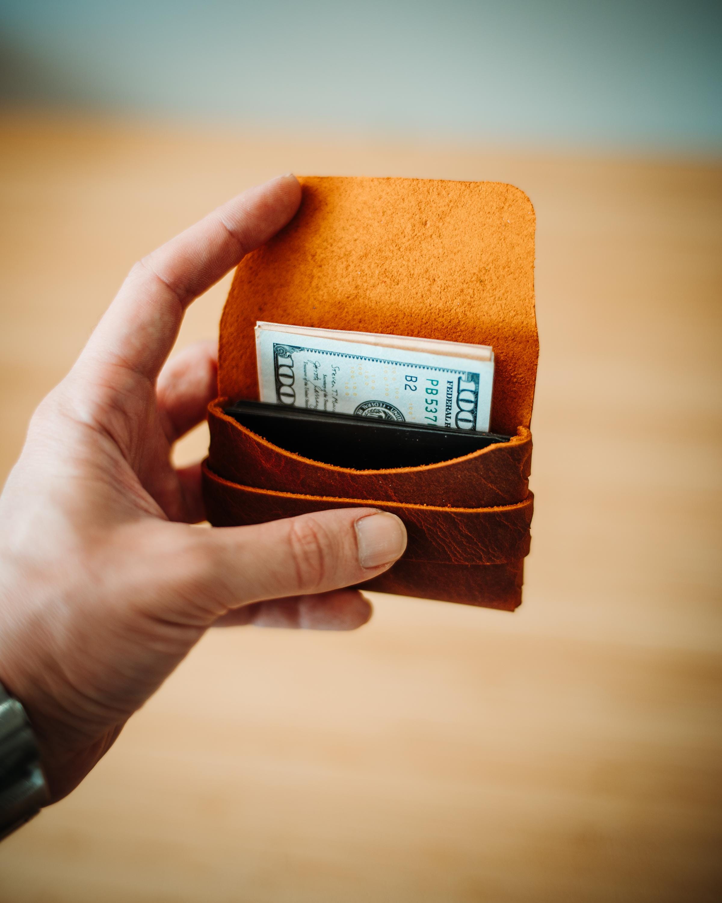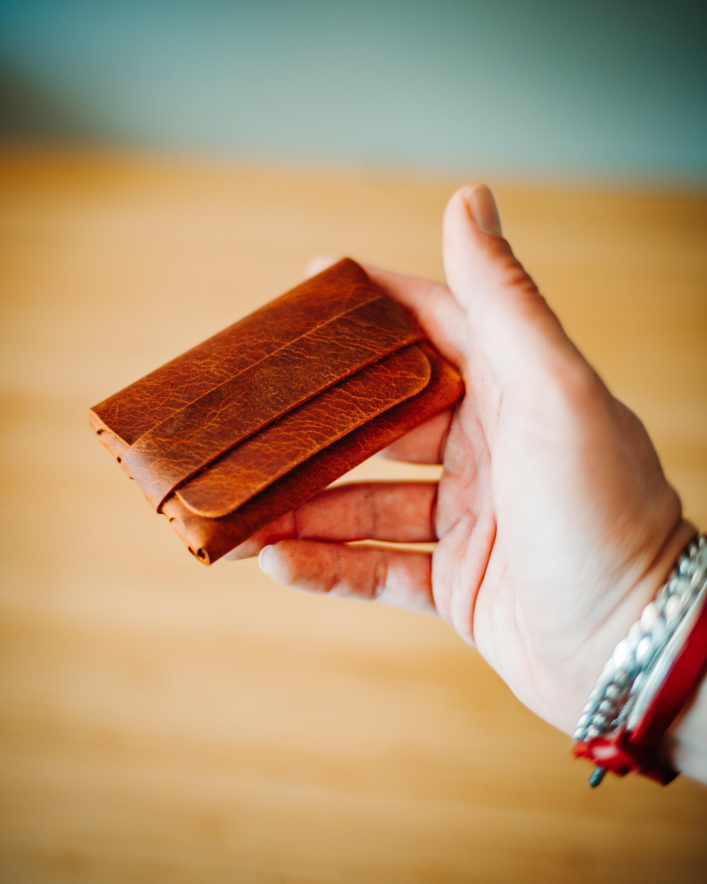 This compact wallet may look simple, but it easily holds up to 8 cards and folded cash without bulk. Thanks to its stitchless design, it naturally forms around your cards over time, offering a sleek and clean look.