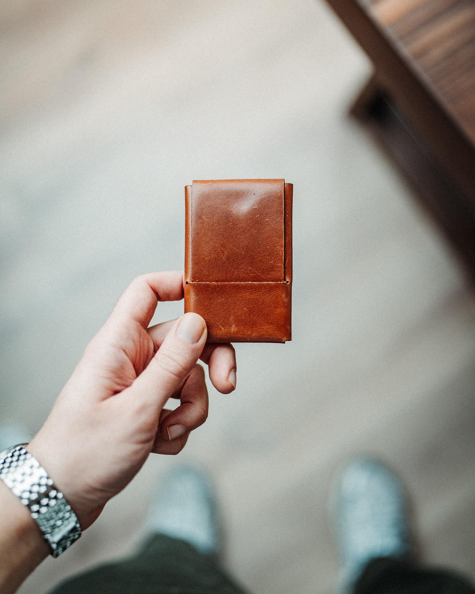 Nice looking, quality minimalist wallet! I love this unique little wallet, it carries all of my essentials with a small footprint. The leather will only get nicer over time.. I do recommend. You may have to be patient with it getting to you, but it is worth the wait.
