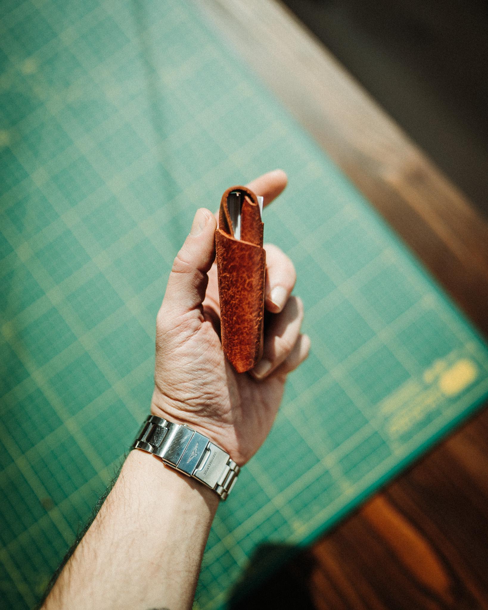 This is the Pueblo leather edition of my minimalist EDC wallet — same compact stitchless design, now made with beautifully textured Pueblo leather. Over time, the surface develops a deep, rich patina, making every wallet unique.