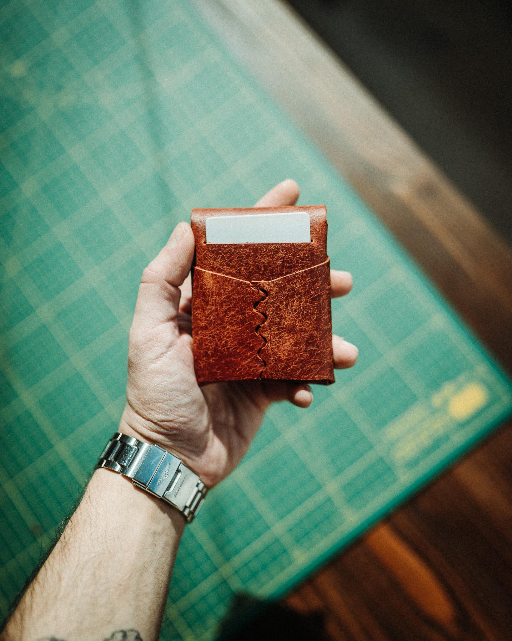Designed for everyday carry, it holds 9+ cards plus single folded cash, with a quick-access slot for your most-used card. The stitchless construction allows the leather to mold to your needs, while staying slim and pocket-friendly. Handmade with care, this wallet balances durability, function, and style.