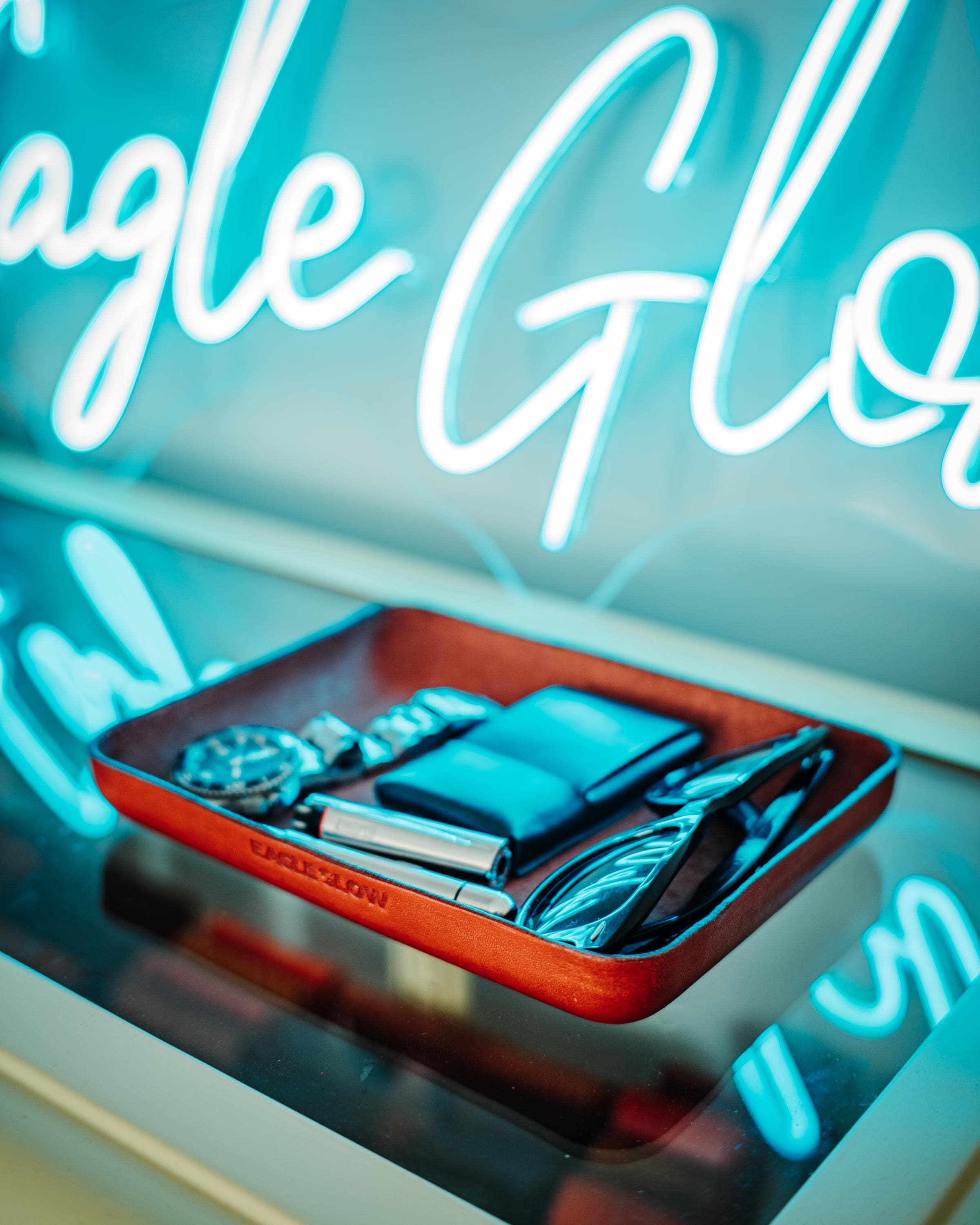 This handmade catchall tray is crafted from thick vegetal-tanned leather in a rich cognac tone.