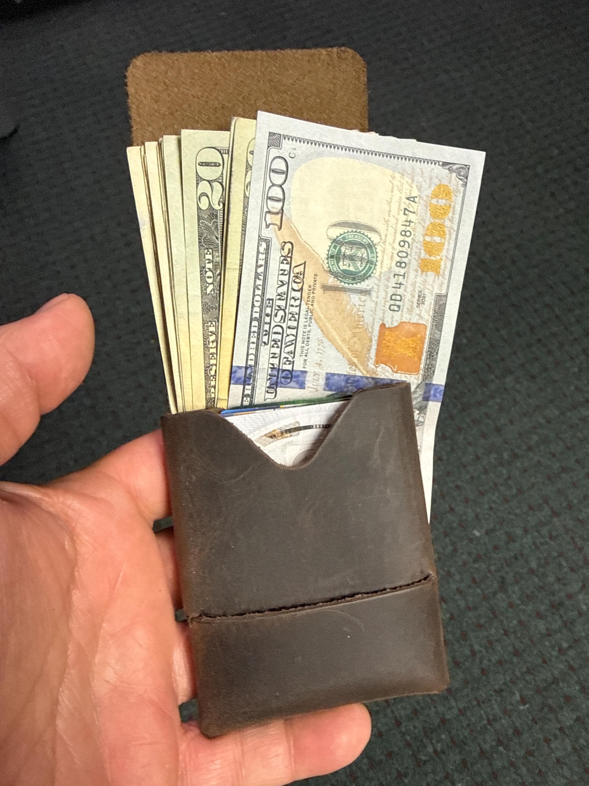 This wallet is better than described. I immediately started using it. Cash fits perfectly and it’s lightweight in the pocket.