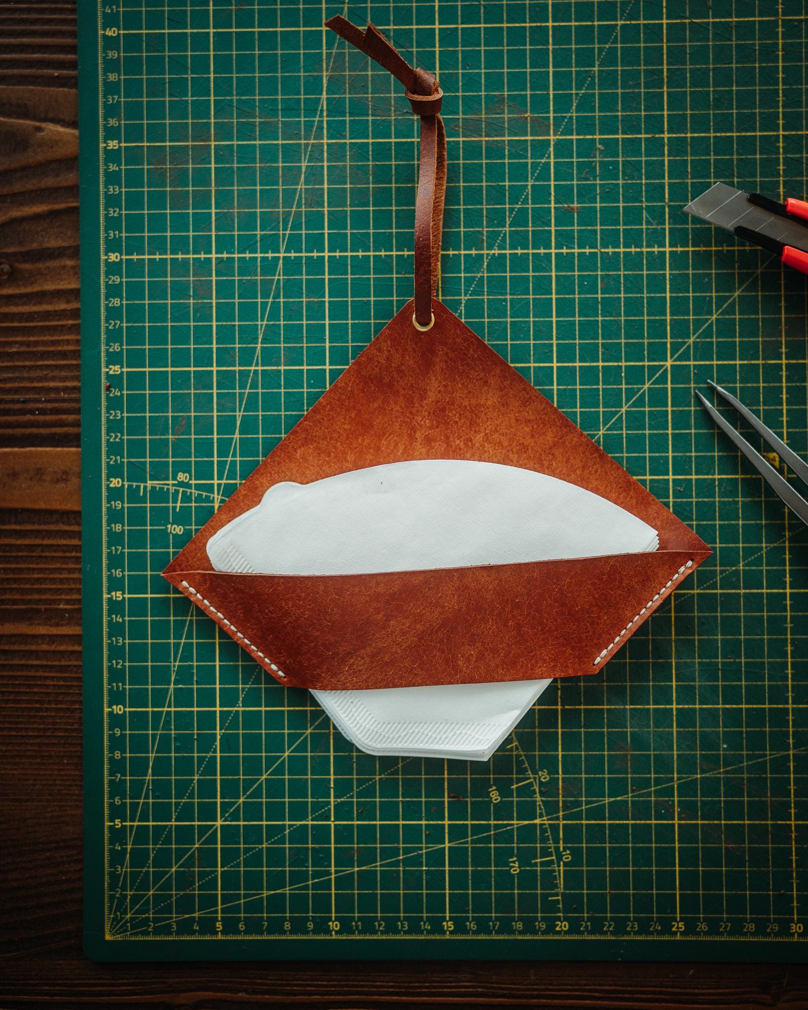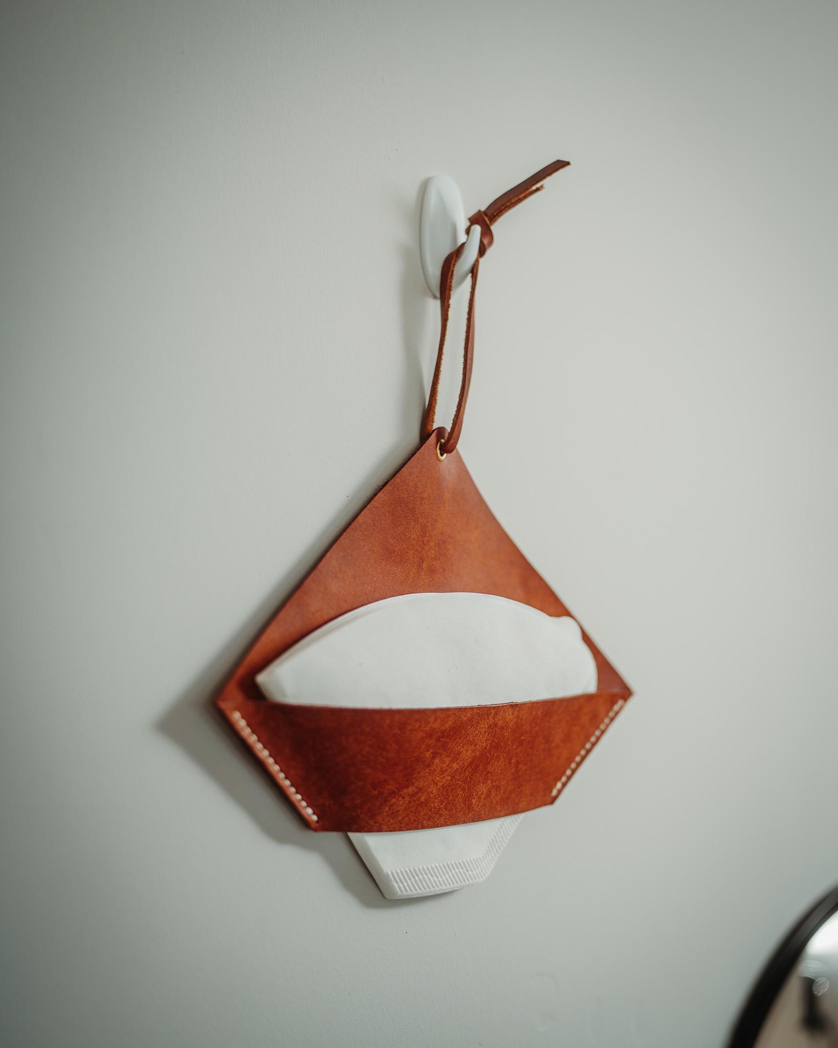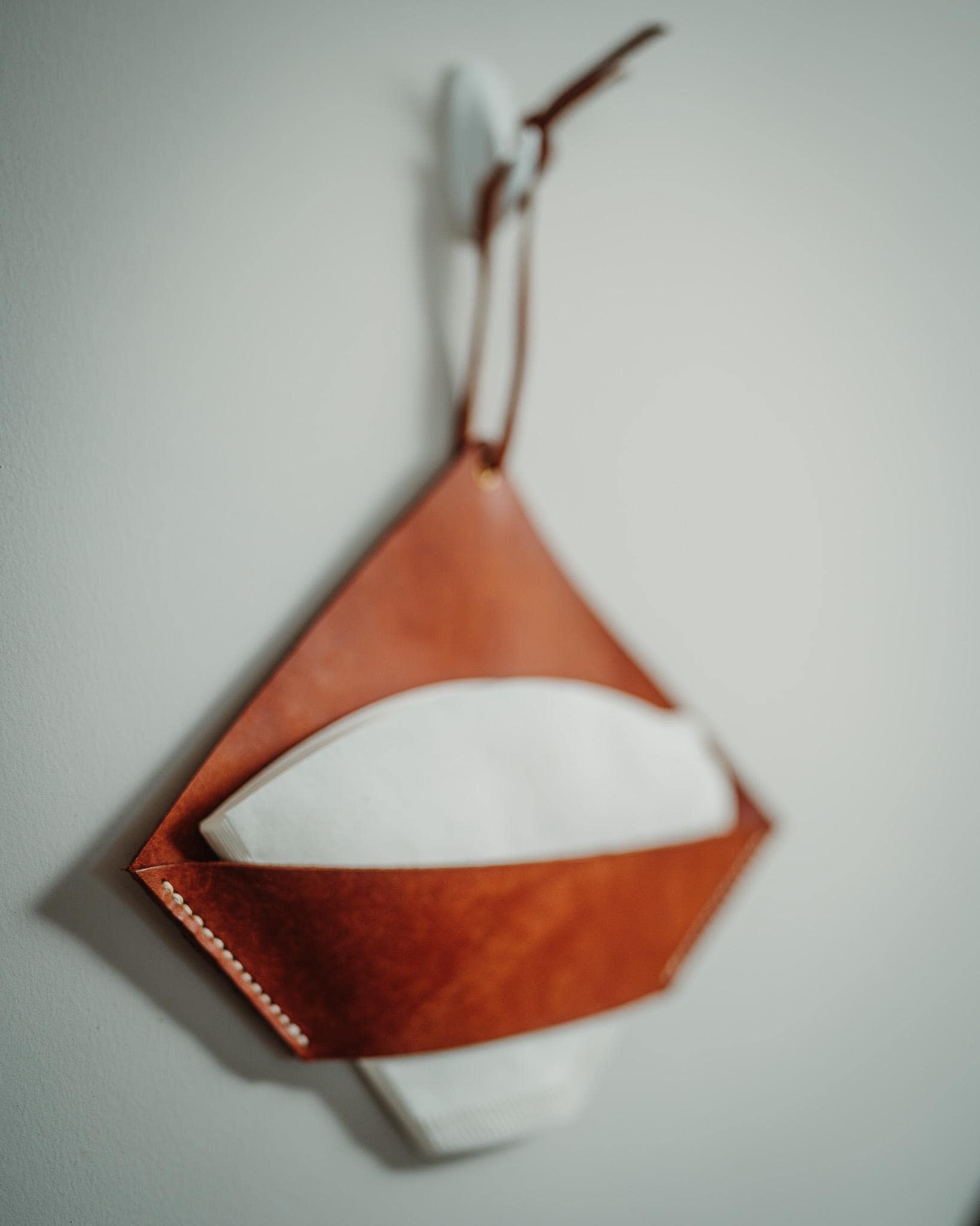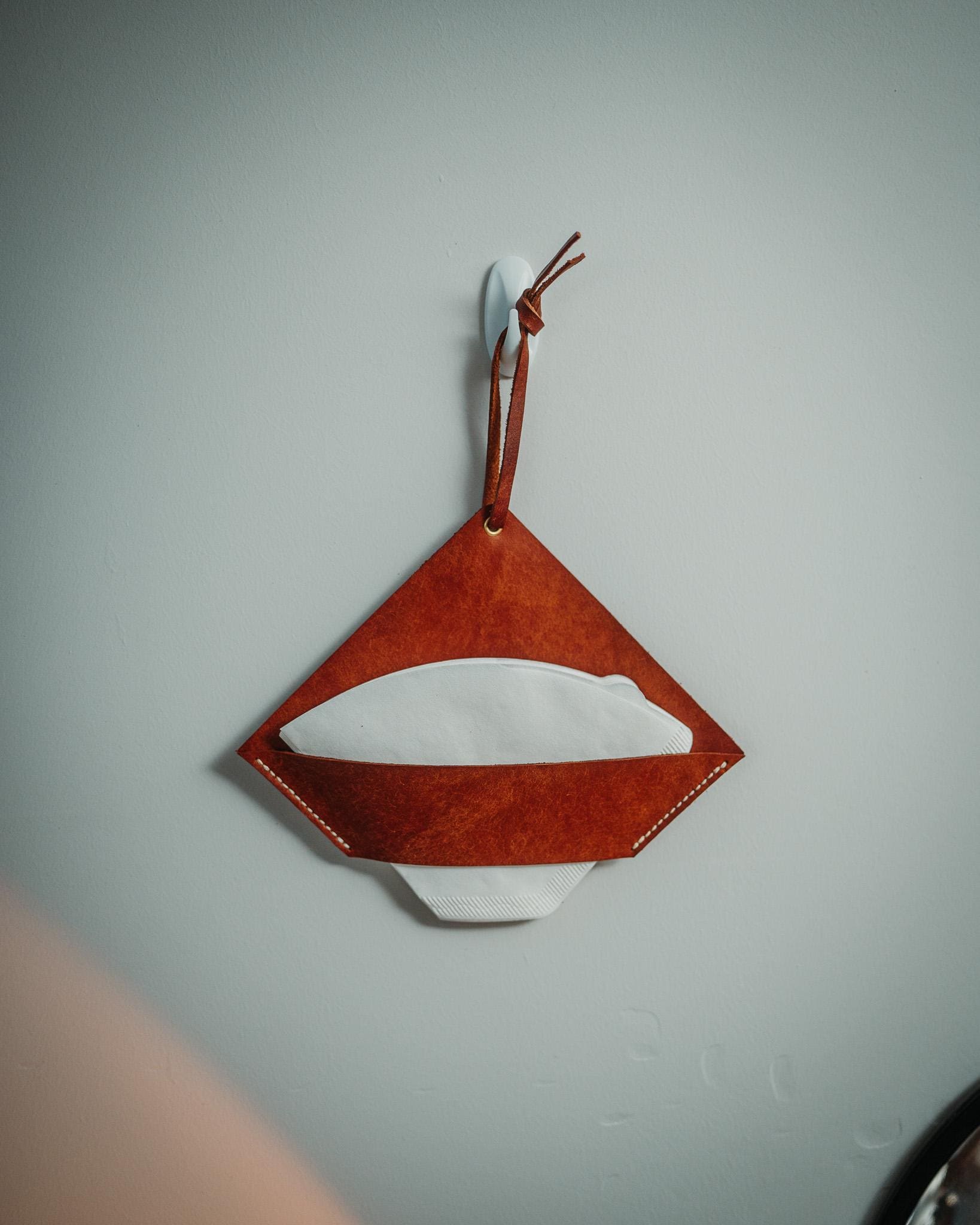 Crafted from full-grain Pueblo leather, this wall-mounted sleeve keeps your filters accessible and neatly organized while adding a warm, handmade touch to your space.