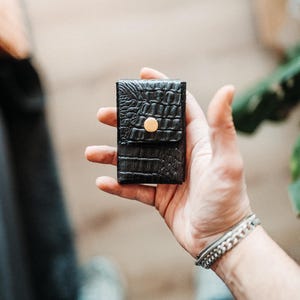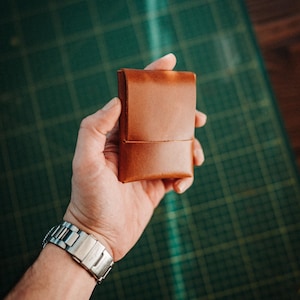 This wallet was designed as a continuation of my front-pocket wallet series — created for those who want the same ultra-slim philosophy with added structure and security. Inspired by the original front-pocket design, this model carries forward the minimalist form while introducing a snap closure and a refined glossy finish. Crafted from high-quality full-grain leather, it offers a luxurious look without sacrificing the compact feel that defines the series. With 4 card slots, the wallet is engineered to comfortably hold 8–10 cards along with folded cash, all while remaining slim and front-pocket friendly. The glossy full-grain leather surface ages gracefully, developing a smooth and rich patina through daily use. Available in 9 glossy color options, each wallet is handmade with attention to detail and long-term durability.