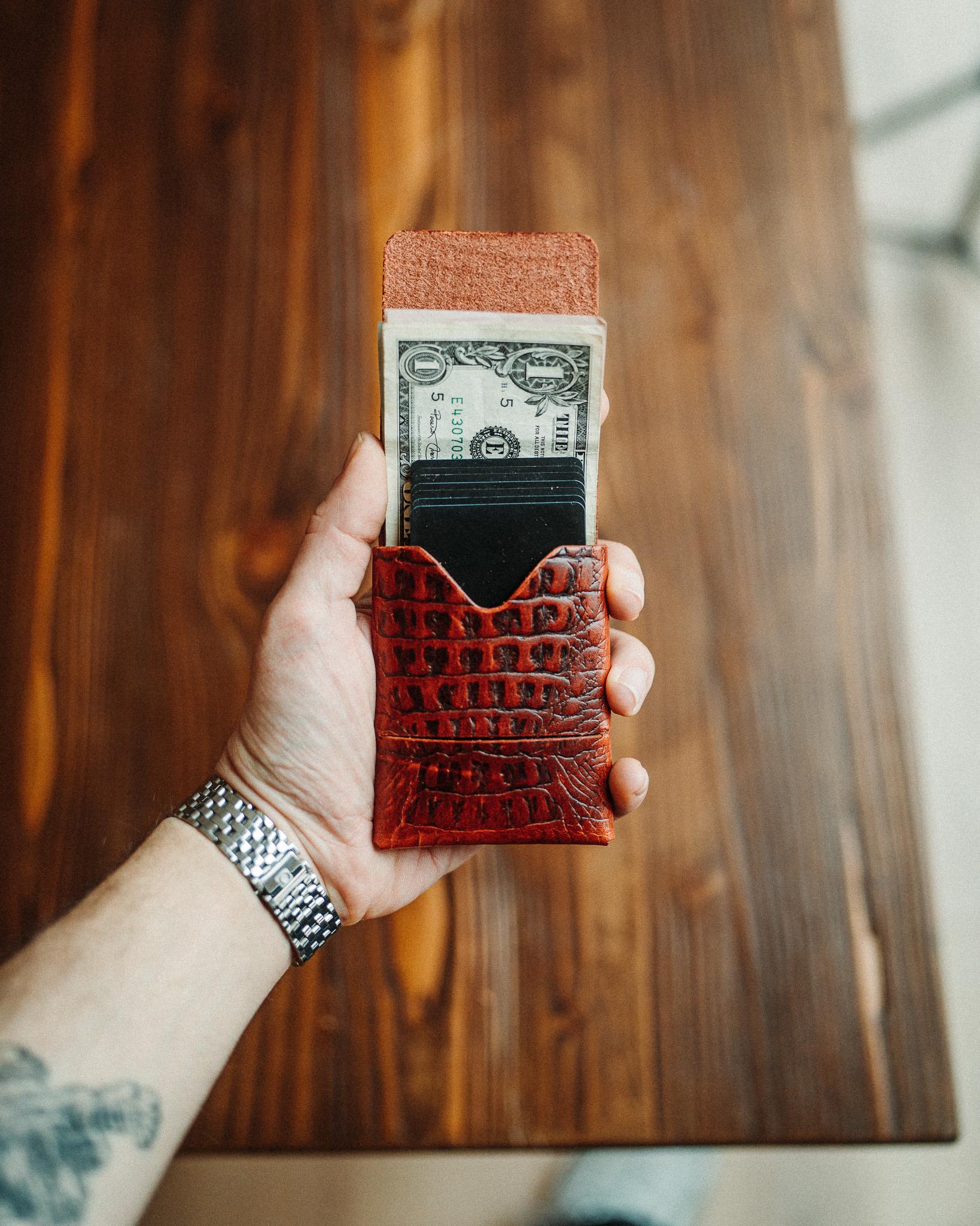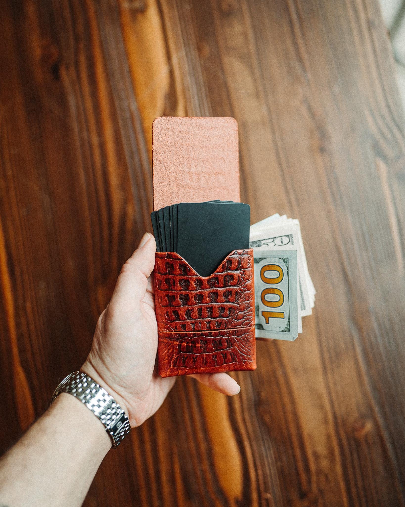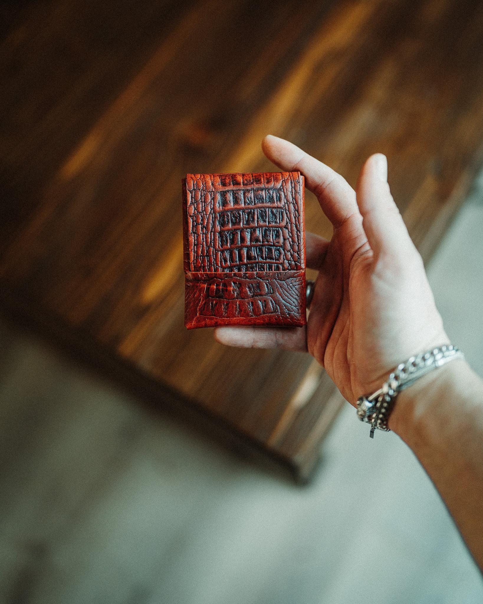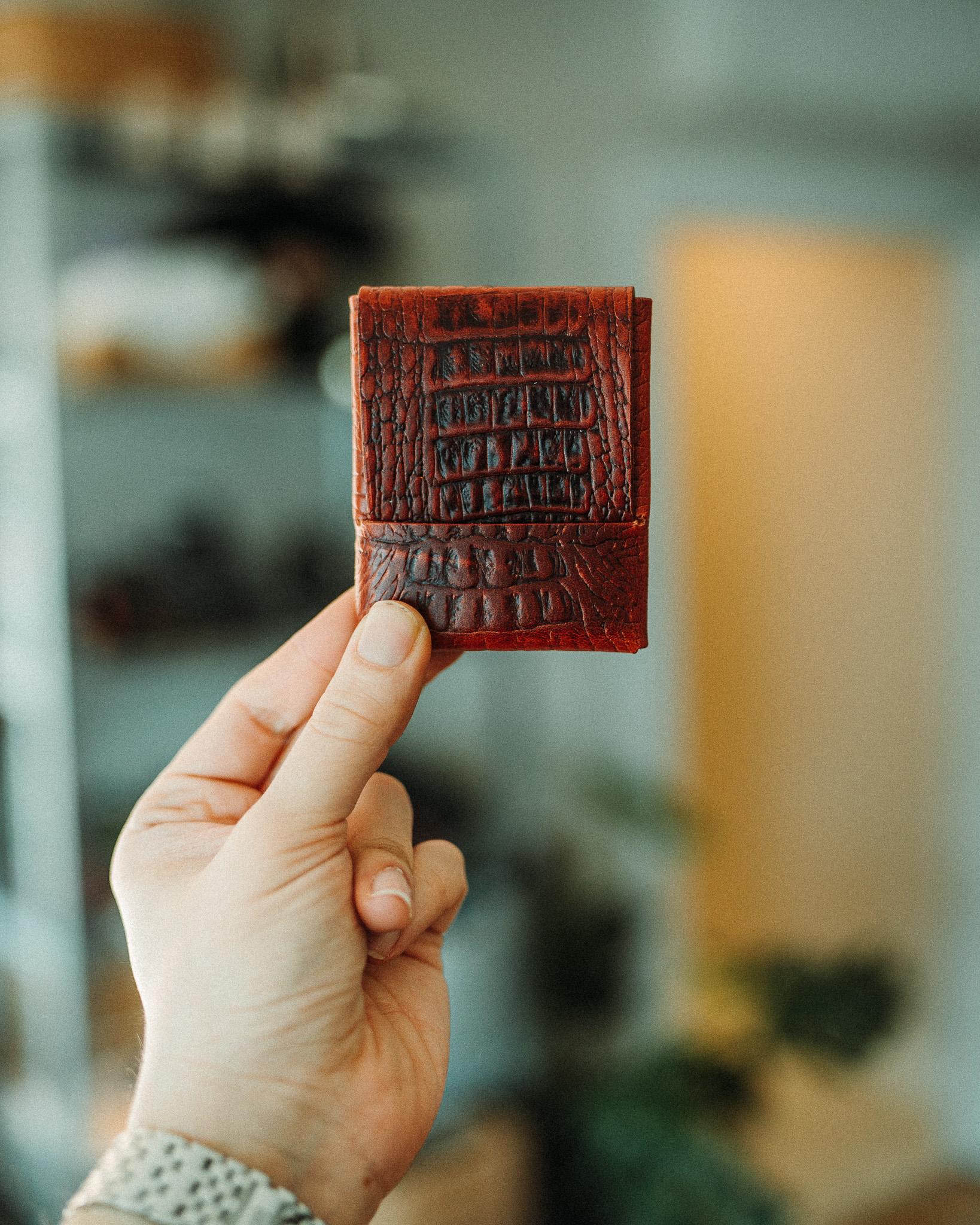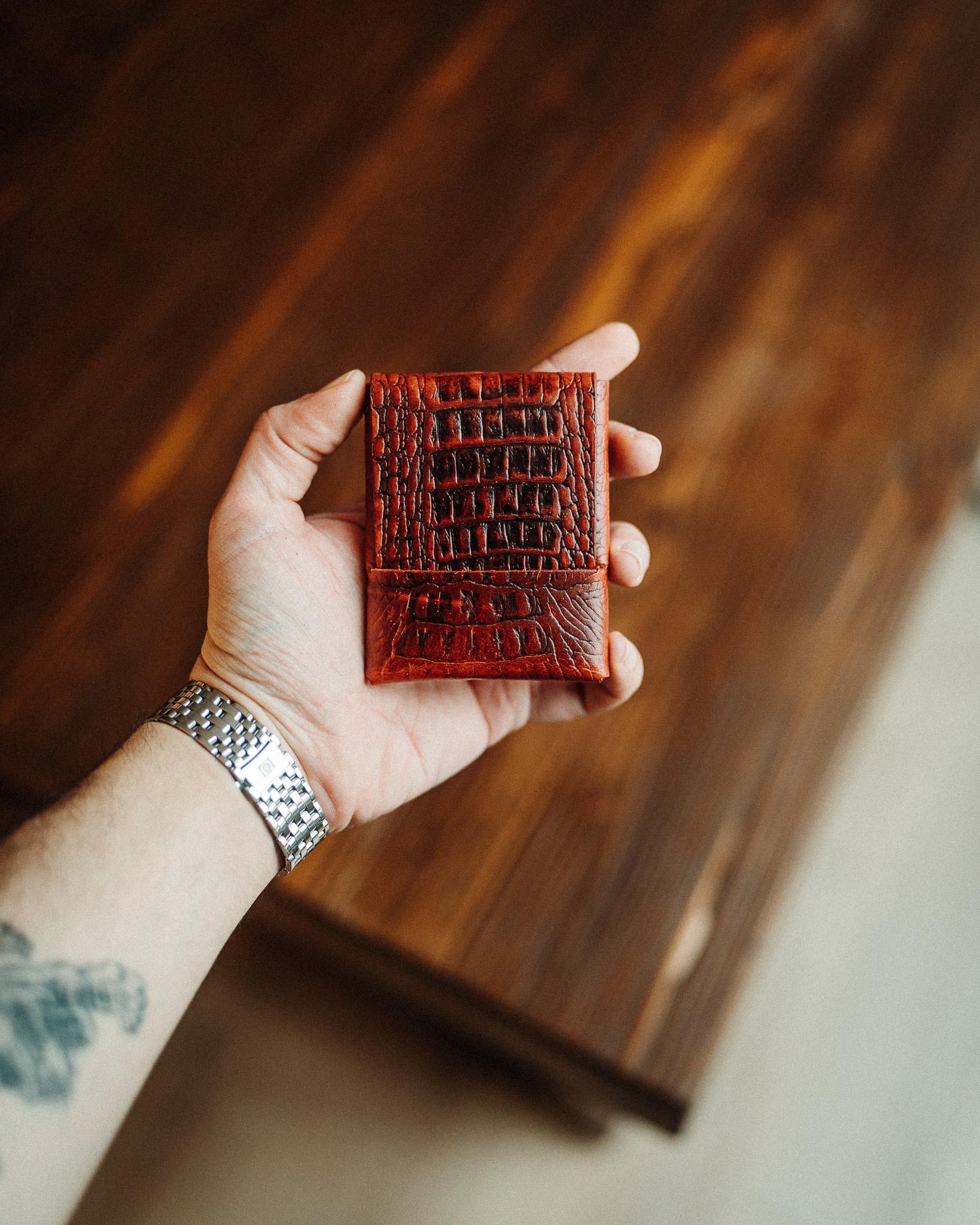 ✔ Handmade from full-grain Italian vegetable-tanned croc embossed leather