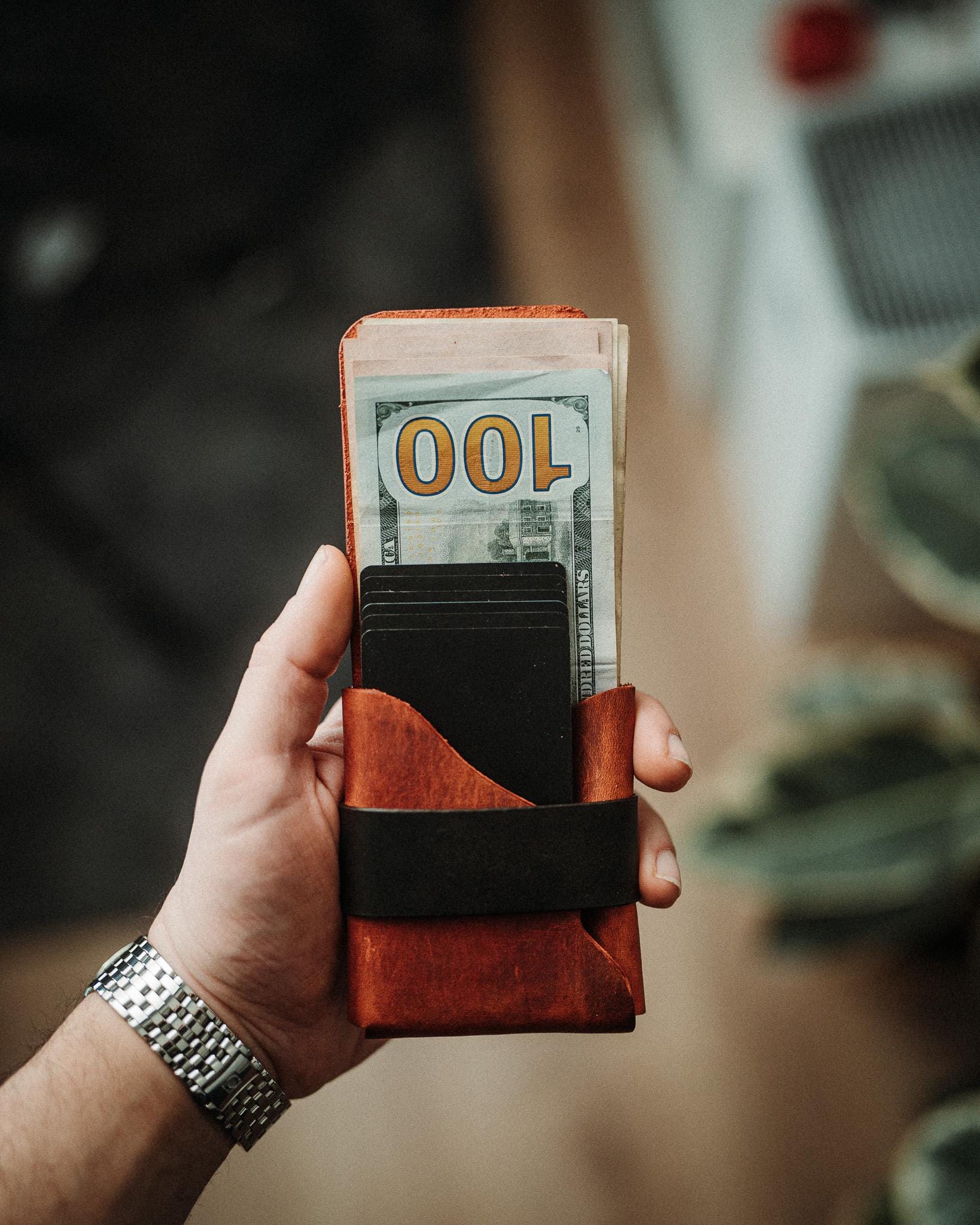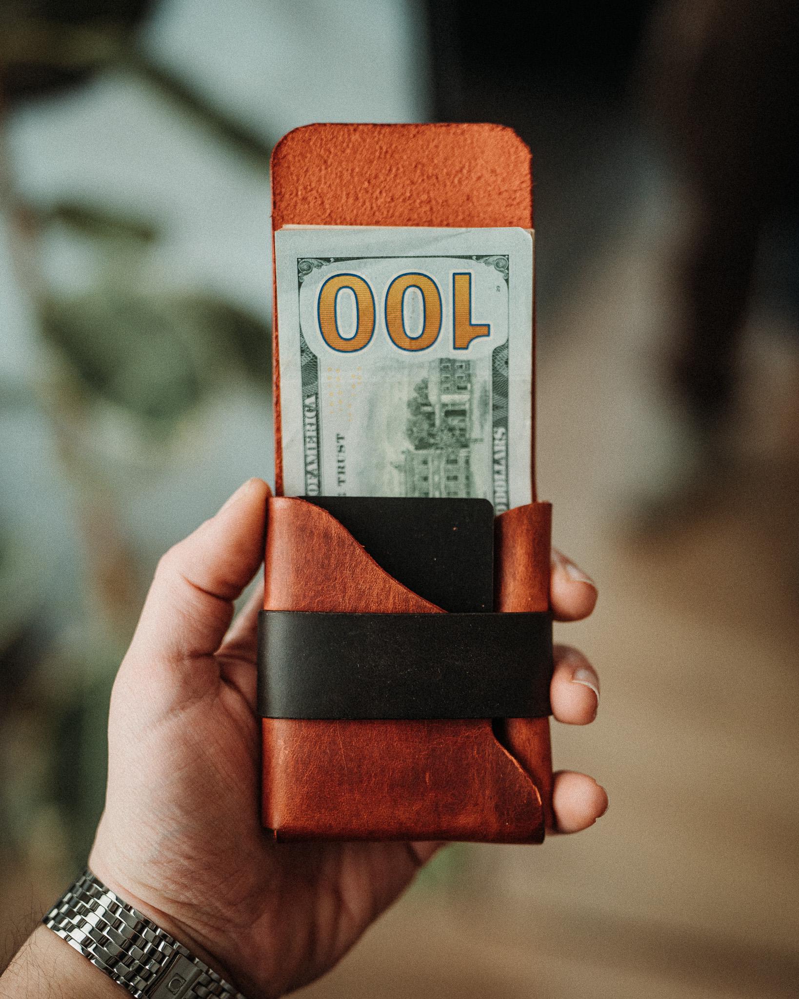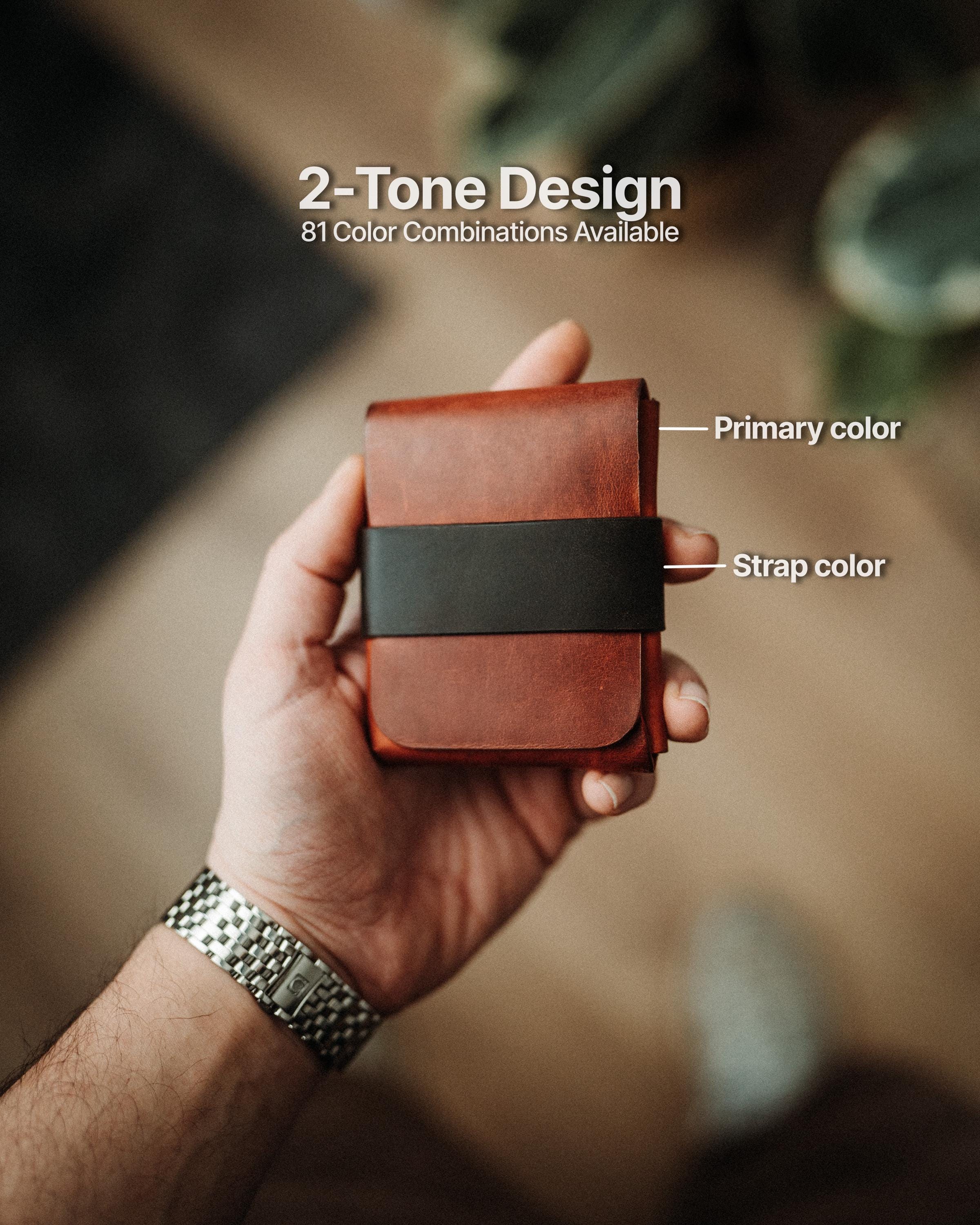 ✔ Holds 1 to 14 cards comfortably, plus up to 20 bills ✔ Quick access slot, pull a card without opening the wallet ✔ Fully stitchless construction, no weak points, no failure ✔ Shaped from one continuous piece of leather with a natural flow ✔ Handmade from full-grain crazy leather ✔ Body and strap each available in 9 colors, 81 total combinations ✔ Euro-sized version available on a separate listing