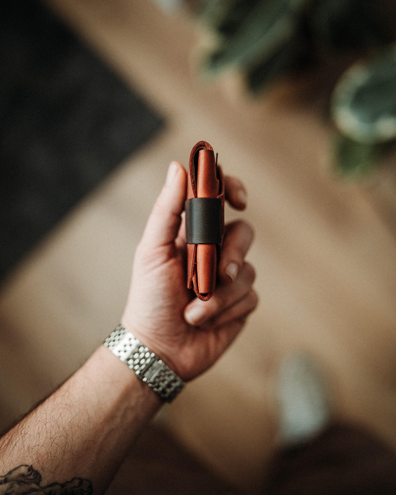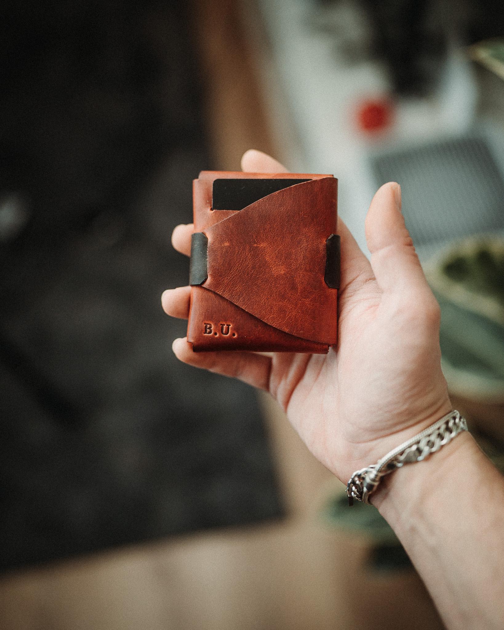 This is a fully original design, the result of three years of iteration and more than ten failed prototypes. The goal was simple but hard to reach: a wallet with no stitching anywhere, shaped from a single flow of leather that works as one piece. No stitching means no weak points, no thread to fray, nothing that can fail over time. The leather does all the work, holding its shape and gripping your cards naturally. The quick access slot lets you pull your most-used card without opening the wallet. Inside, it carries anywhere from 1 to 14 cards without stretching, and up to 20 bills. Body and strap colors are chosen separately, each from 9 full-grain crazy leather options, giving you 81 possible combinations. If you want a second strap in a different color later, just send a message.